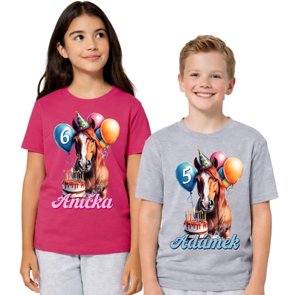 Dětské tričko s vlastním jménem kůň BDAY